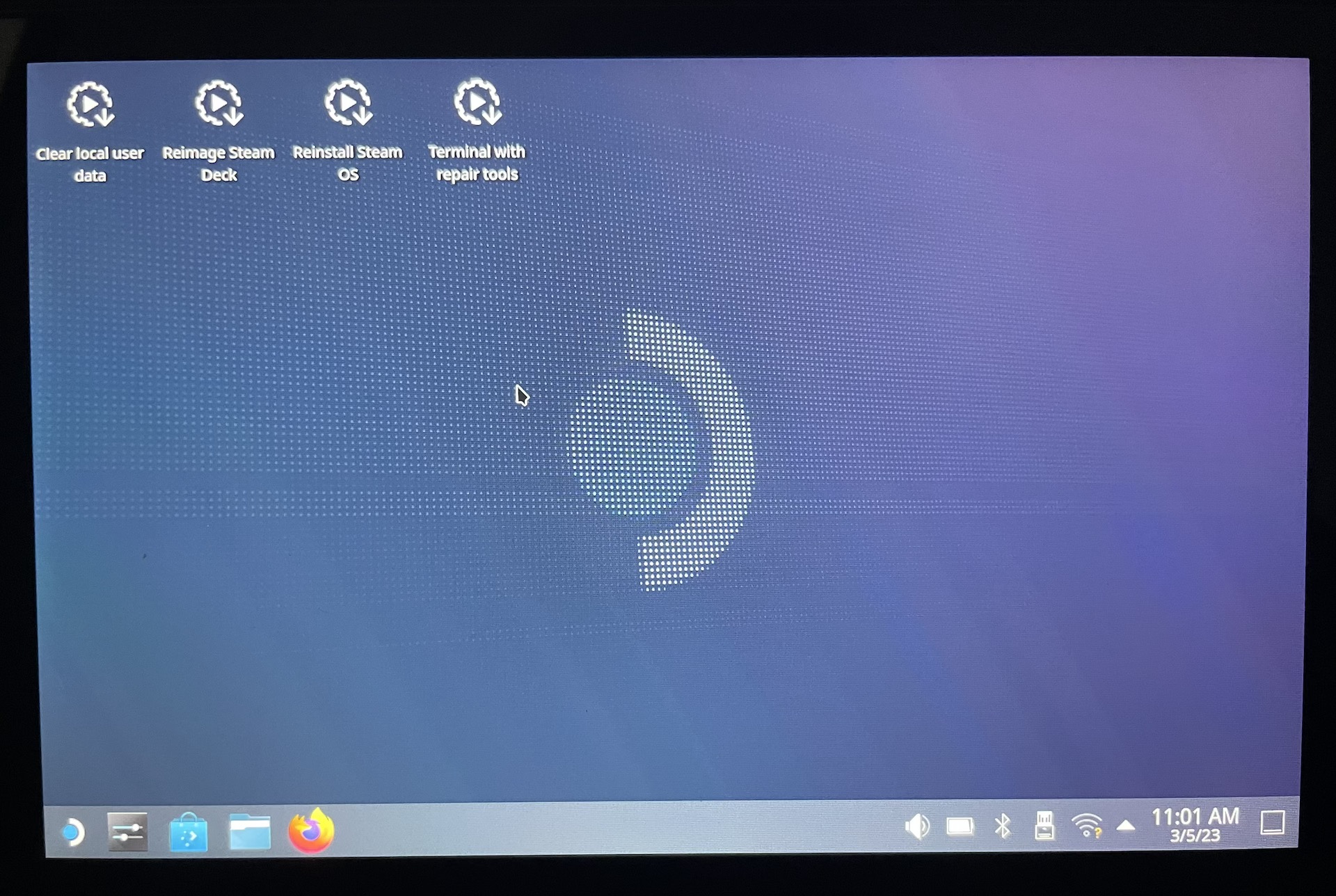 - Có thể sẽ mất đến một vài phút để Steam Deck sẽ khởi động vào môi trường desktop. Bạn có thể điều hướng ở đây bằng trackpad và R2-trigger.