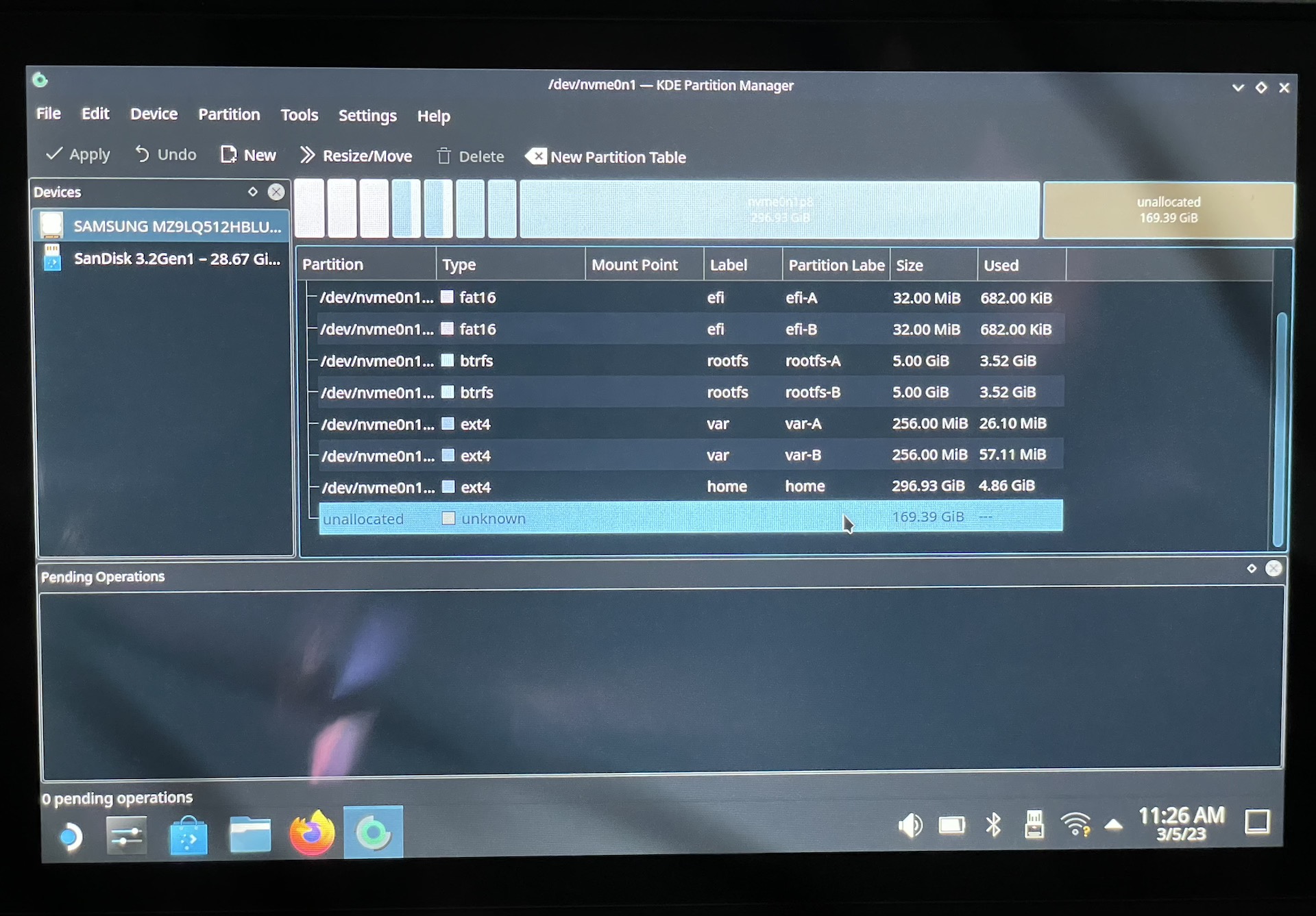 - Ấn apply góc phía trên bên trái. Tới đây các bạn đã hoàn thành việc chia ổ SSD của mình cho 2 hệ điều hành. Sau khi khơi động lại, Steam Deck sẽ tự động cài lại hệ điều hành Steam OS vào ổ có định dạng ext4.