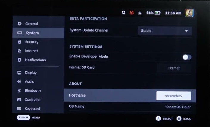 Bước 1: Đổi tên máy thành steamdeck : đây là tên mặc định máy trước khi đến tay khách hàng. Thao tác này rất quan trọng sẽ tránh bị thu hồi quyền login trên mỗi máy.